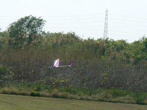 | パイロンも練習しました ターンで90度傾けエレベータをメイッパイ引きます 同じコースで飛ばすのは、難しく 1舵0.5秒の遅れがでるのでいかに舵を打たないで回るかが パイロンの勝つ方法です もちろんターンもパッパッと回らなければいけません。 |